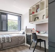Room Size: 15.2 – 19.8sqm, Our luxe en-suite student room has all of our standard features, plus extra floor space to enjoy. You’ll also get a shared social space and kitchen to hang out with your flatmates.