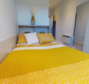 FOUN300-031125Perfect for couples sharing or anyone wanting the maximum amount of space of 25 sq m, our Gold 1 Bed Flats are finished to a high standard. With a separate bedroom and spacious living room and kitchen area with breakfast bar, these flats have plenty of living space. There’s a study desk and chair in the bedroom, plus a private bathroom. With a cinema room, gym and laundry in the building, you’ll be set up for an excellent student lifestyle.