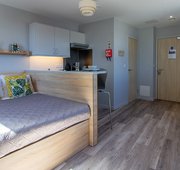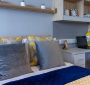The Deluxe Studio measuring around 24-28m² comes with three quarter sized bed, dining area, ample storage, mirror, study desk and chair and modern kitchenette with fridge-freezer, microwave oven and hob. This studio also has a fully fitted en-suite containing a large shower and stylish fittings. You will also have access to the cinema room and on-site gym.