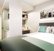 We only have a limited number of Elegance Duplexes available. This unique studio apartment is split over 2 levels, linked by a spiral staircase, with the bed located upstairs, and the living area downstairs. Our rooms aren't quite ready yet! The images on this page are CGIs.