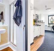 It includes a comfortable double bed, ample storage for all your belongings, Wi-Fi enabled study space, private bathroom and a fully fitted kitchen. The studio is well equipped with all modern amenities required for an easy and comfortable stay. The apartment is completely your own, allowing you privacy and freedom. Study for your exams without any distractions, prepare your meals in the kitchen and relax in the comfort of your own room.