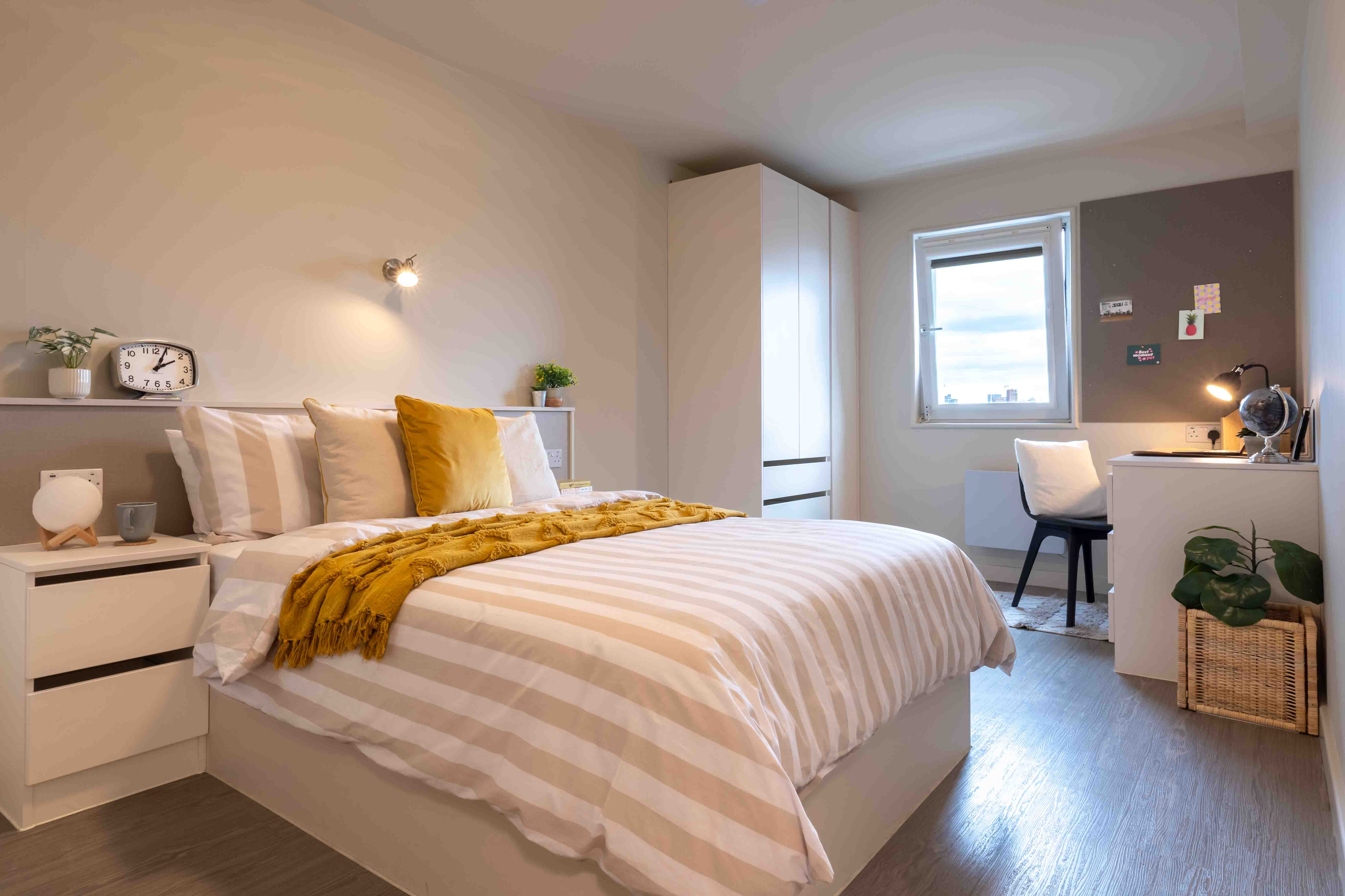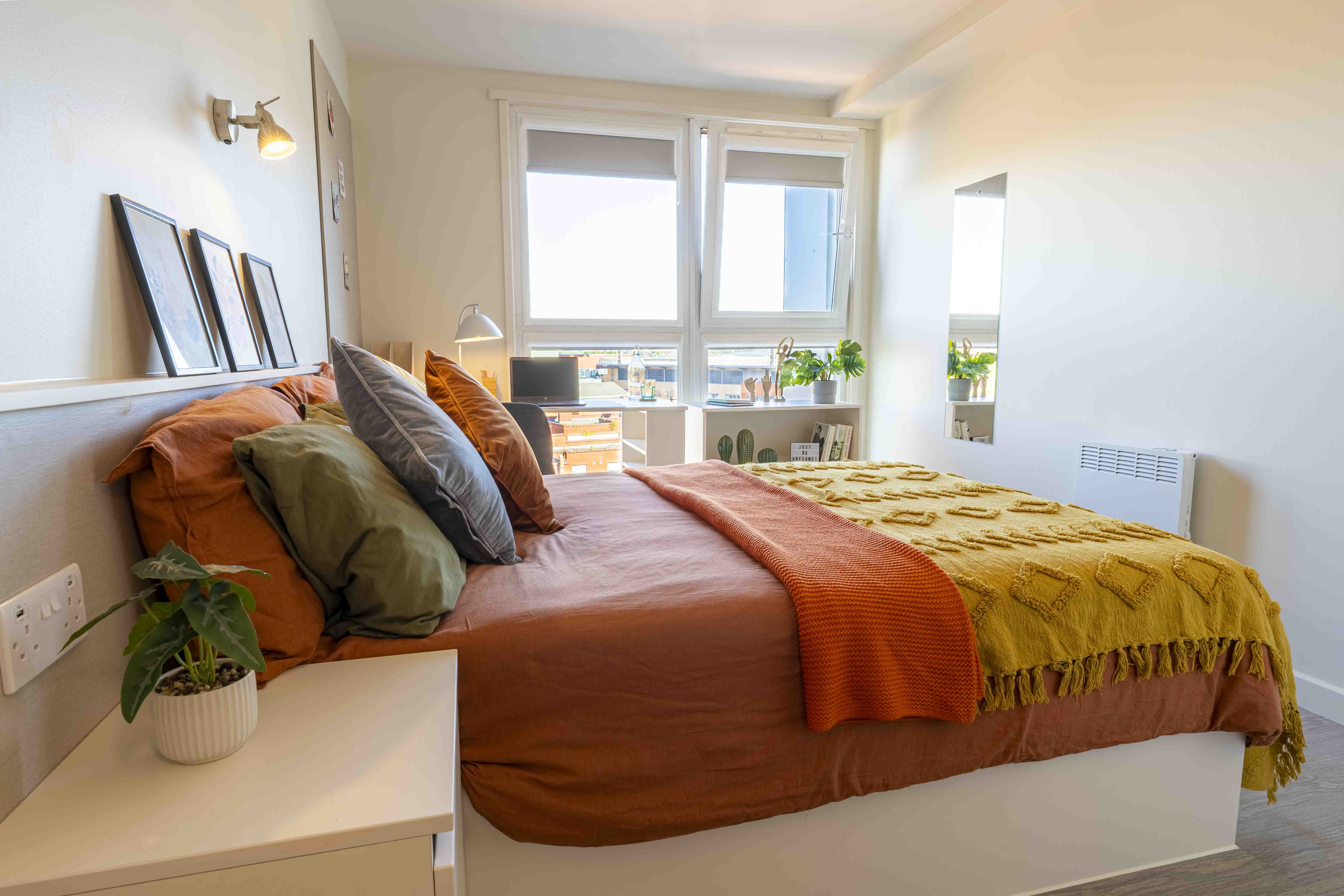 KERR250-031125Whether you're a postgrad or someone that just prefers a bit more privacy, our silver one beds are the perfect solution for really getting comfortable at uni. They're great for couples sharing too, with 45 sq m of space to make your own. These great apartments located on floors 1-3, have plenty of room to relax, study, cook and entertain, with a private bathroom and kitchen and living area with comfy sofa and big bright floor-to-ceiling windows. The apartment also features a study area and dining area, with lots of storage options throughout. Residents can enjoy the building’s onsite gym, social space with ping-pong table and study area.