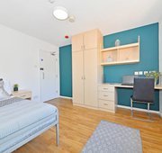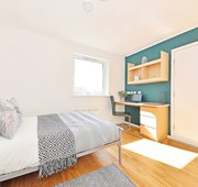 A Spacious self-contained studio with a ¾ double bed, study desk and wardrobe. The studio has a modern kitchen with integrated facilities, En-suite bathroom, lounge area with a plasma TV and up to 100Mbps WIFI.