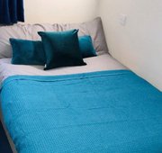 Self contained studio bedroom with own kitchen and bathroom Double bed Under-bed storage, desk, chair, wardrobe and chest of drawers