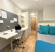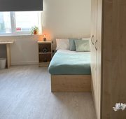 Communal kitchen, your own bathroom and living space shared with 3-5 students 15 – 19m2 approximately Double bed Ensuite bathroom with shower toilet and basin Under-bed storage, desk, chair, wardrobe and chest of drawers