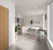 Room sizes may vary from 32.6 to 32.8m2 - Your own private studio - Private en-suite with shower - Double bed with under bed stor age - Over bed storage - Bedside tables - Wardrobe - Chest of drawers - Study desk with shelving - Desk chair - Notice board - Coat hooks - Mirror - Your own kitchen with plenty of storage - Double sofa - Dining table / breakfast bar with two seats - Under counter built in oven - 4 ring hob - Integrated fridge/freezer