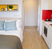 What's included : Generously sized studio apartment (23-34m2) Small Double or Double Bed Wardrobe Desk Chair Fridge with small Freezer compartment Integrated Microwave Oven Television Shelving Unit Electric Hob Dining Area Ensuite Bathroom