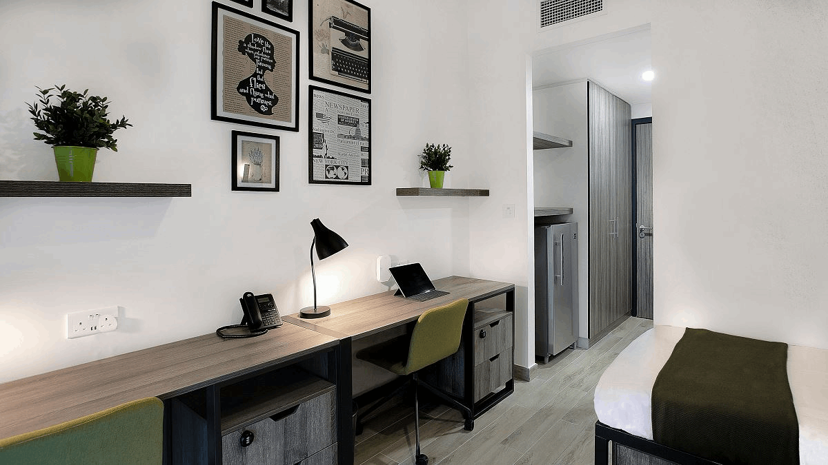 A shared room giving you the opportunity to meet new people, complete with ample storage and extra-long workstations.