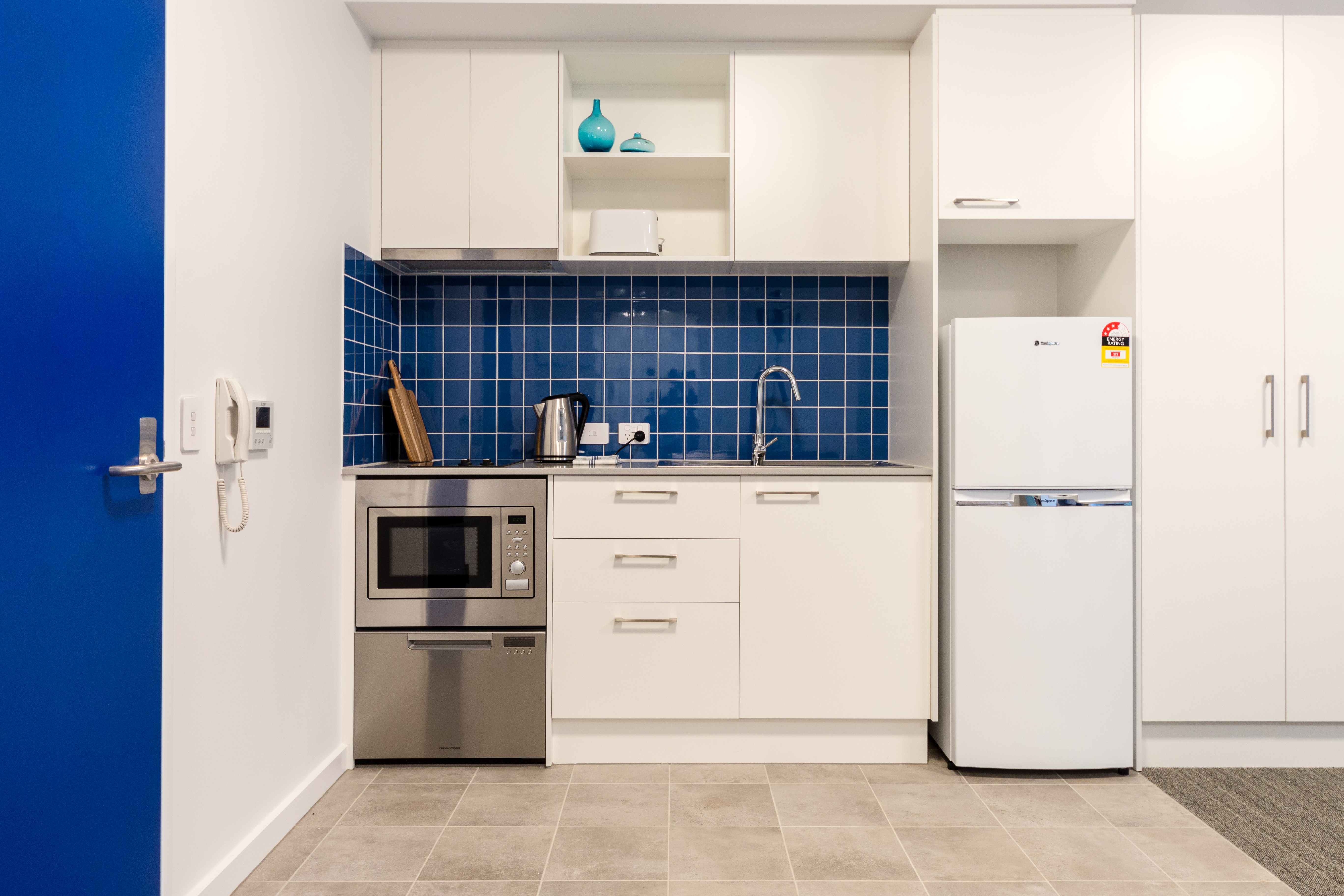 The well-appointed and spacious Premier Studio apartment is approximately 22 sqm and provides a stylish, open-plan space to unwind and relax. It offers a comfortable double bed and a generous study area with plenty of storage space.