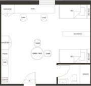 The two comfortable King Single beds are separated with bookshelf dividers for privacy, while adding plenty of storage space. Individual study desks, and a dining table with chairs are provided.