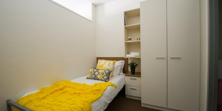 Each bedroom is lockable and features a single bed and wardrobe. The bedroom also includes a large pin up board, study desk & chair making it the perfect space for students to study.
