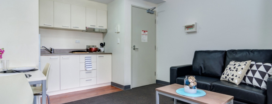 Enjoy cooking in your own fully equipped kitchen with modern appliances. When it is time to unwind, you will find a living and dining area featuring a 2 seater sofa, TV, coffee table, dining table & chair. The study zone includes a large pin up board, study desk & chair making it the perfect space for students to study.