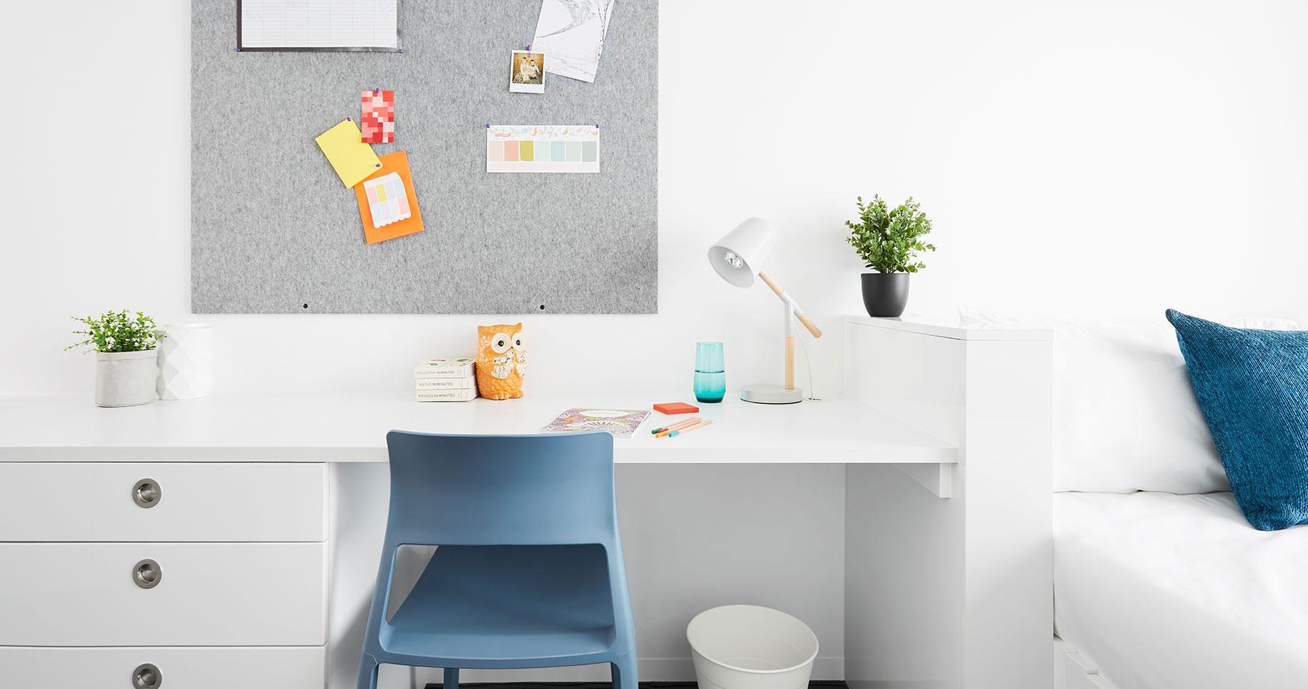 Your own bedroom with study desk and clever storage. Plus you'll share 4 bathrooms within the apartment, large living room, kitchen, and dining area. It comes spacious with luxurious facilities attached making it one of the best rooms to stay in the building. These are located on upper levels of the building. Prices may vary as per the floor. The deposit amount is first week’s rent to secure the room.