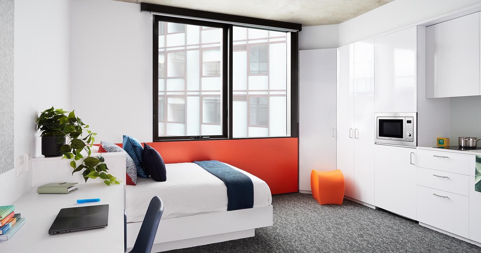 Twin studios come equipped with 2 king single beds, private bathroom, built-in storage, kitchenette, dining and study area to share with your roommate. . This turns out to be one of the best options for two siblings or friends who are looking to stay together. Prices may vary as per the floor. The deposit amount is first week’s rent to secure the room.