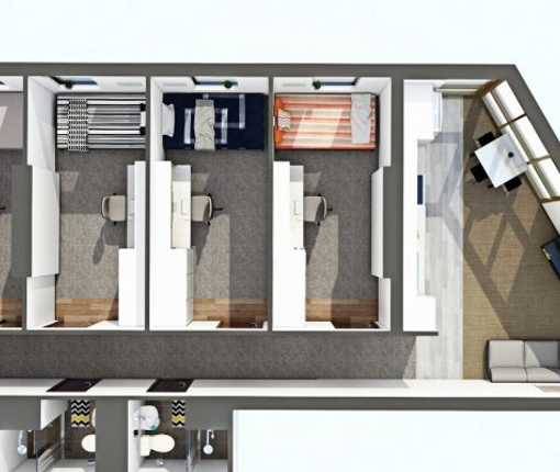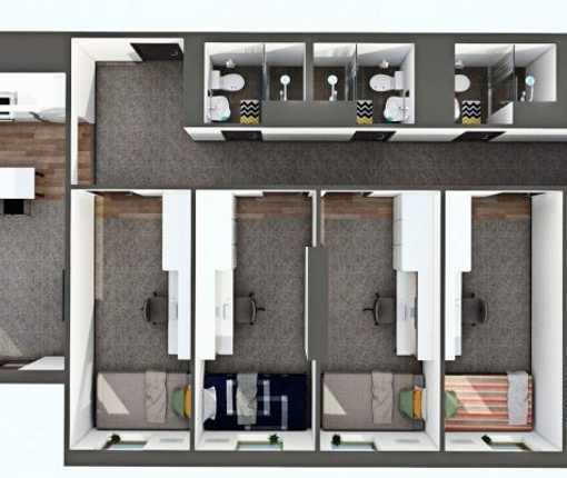 4-Bedroom Apartments in Park Central are built for four single occupants to share. Each apartment has a fully-equipped kitchen with a refrigerator, cooktop, electric oven and microwave, as well as a comfortable living area with a dining table and chairs, lounge seating and a 40” LED SmartTV. There are also two shared bathrooms. Within the apartment, each of the four bedrooms has a King Single Bed frame and mattress, and a study desk and chair. The rooms are secure, air-conditioned and full of light, and the apartments are close to all major public transport links. Your rent includes: Unlimited WiFi Utilities - Electricity & Water Access to Community Spirit Residential Life Program Rooms shown during inspection are for display purposes only. Actual room allocation at the time of check in may have a slight variation of direction, shape or size. Very small percentage of rooms in Sky Tower may have non operable windows.