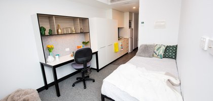 Studio Accessible rooms in Park Central are designed for students who require mobility accessible living. They feature all of the necessary facilities, including a fully-equipped kitchenette with a refrigerator, cooktop and microwave. They also have a Double Bed frame and mattress, a private ensuite and a study desk and chair. Studio Accessible rooms promise comfortable living. They are secure, air-conditioned and are full of light with fantastic views of the city. The rooms are also located close to all major public transport links. Your rent includes: Unlimited WiFi Utilities - Electricity & Water Access to Community Spirit Residential Life Program Rooms shown during inspection are for display purposes only. Actual room allocation at the time of check in may have a slight variation of direction, shape or size. Very small percentage of rooms in Sky Tower may have non operable windows.