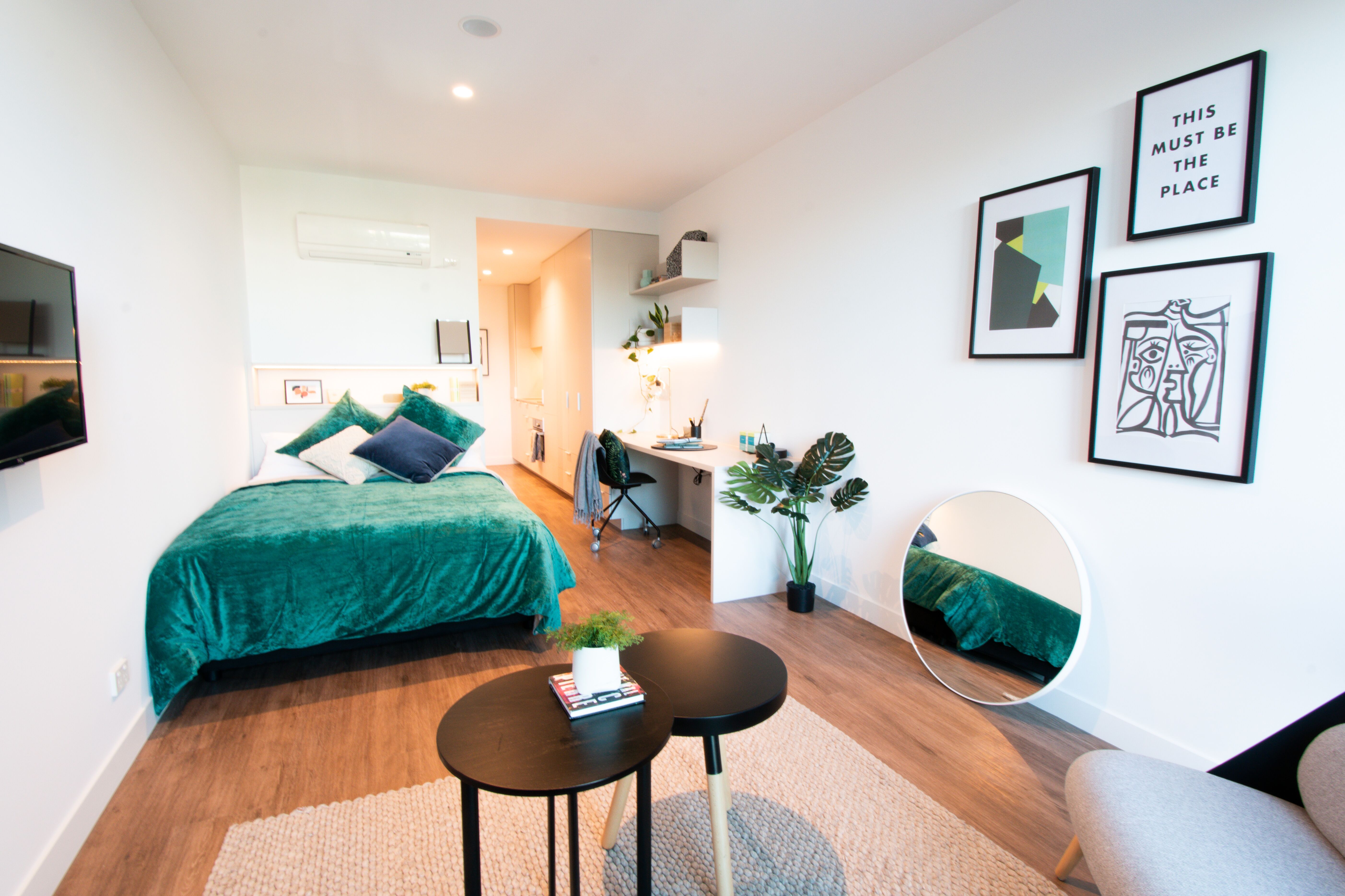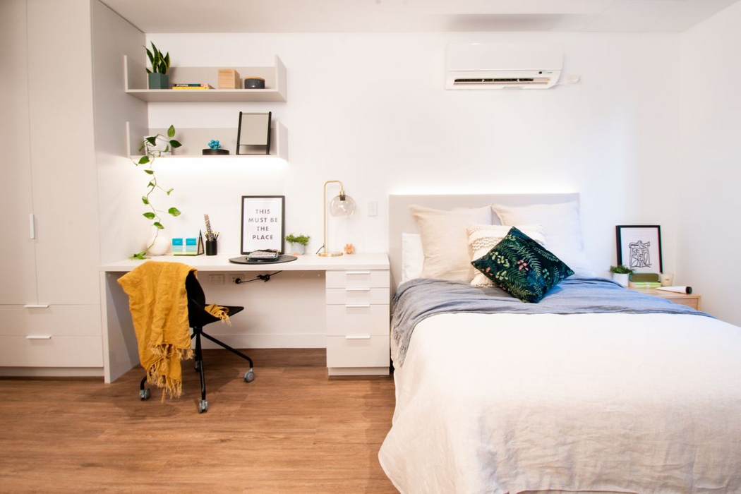 Our DDA studios are very generous in size (30 sq.m). They are accessible for students with disabilities and in compliance with the Disability Discrimination Act in Australia. They have the same modern stylish features of a studio, but with extra living and dining space and a large en-suite bathroom. *These studios are located on Floors 3 to 8.* Please note, image used is of an Executive Studio, please use it as reference.