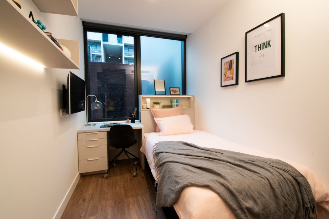 When it comes to value for money and WOW factor, this is the room type for you. The 6 Bedroom Apartment is over two levels and you still have your own space in a well-designed bedroom, a stylish and fully equipped kitchen, and a living area shared with 5 other students. Plus of course, you are still benefiting from all of the great features that come with living at Yugo Berkeley Street at a value price. These apartments are located on Floors 12 to 19. The average size of our 6 Bed Apartments is approximately 128 sq.m.