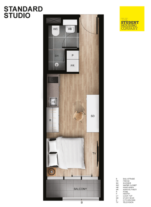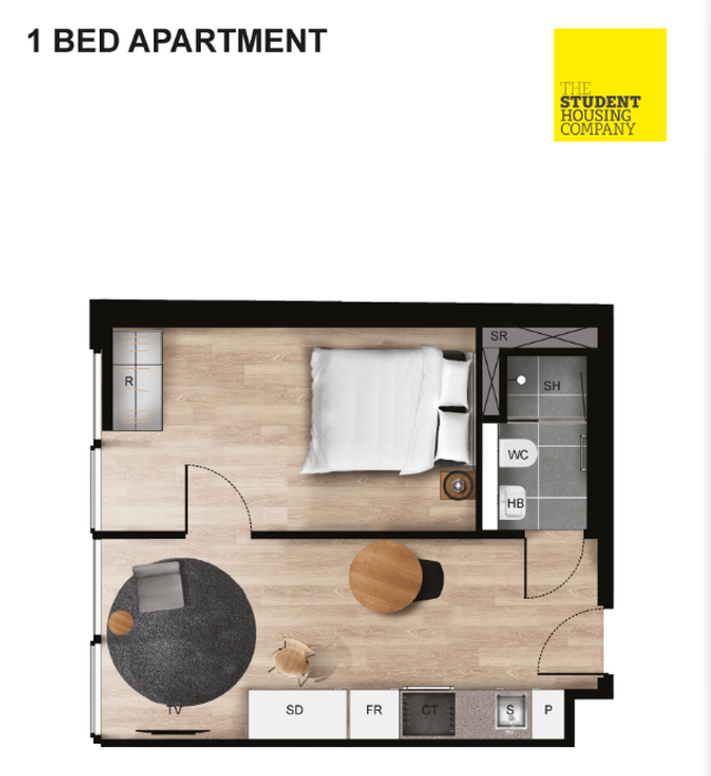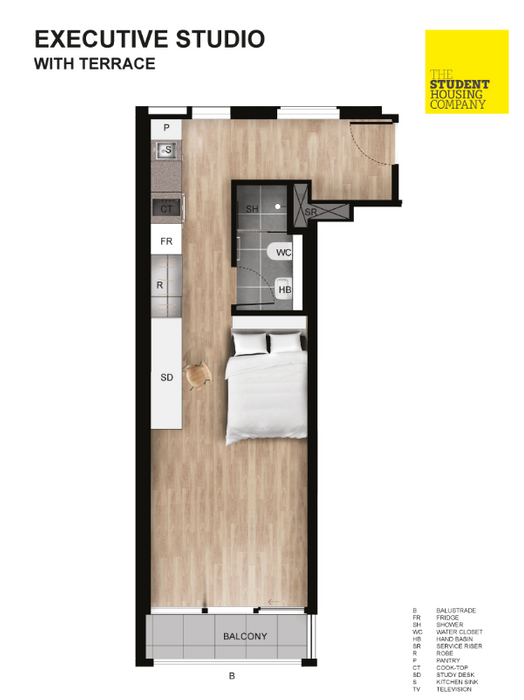 Enjoy your privacy in your own studio apartment featuring a modern kitchen, study desk, and ensuite bathroom. These apartments also feature an outdoor terrace - providing extra space that is perfect for enjoying the sun and some fresh air! The fully fitted kitchen comes with all the modern appliances you need and you also have your own TV and living area. * These apartments are located throughout the building from Floors 2 to 10. * The average size of our Studio with Terrace apartments is approximately 20 sq.m.