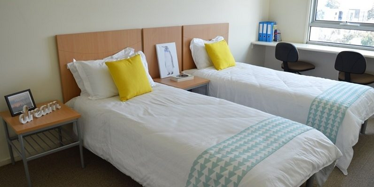Positioned in a large room separate from the living and kitchen area, this The 1 Bedroom Twin Share Large Apartment is perfect for students to share with their best mates or to make a new best mate. The apartment has a fully equipped kitchen with plenty of storage to stock away your favourite condiments.