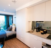 Our DDA studios are very generous in size (30 sq.m). They are accessible for students with disabilities and in compliance with the Disability Discrimination Act in Australia. They have the same modern stylish features of a studio, but with extra living and dining space and a large en-suite bathroom. *These studios are located on Floors 3 to 8.* Please note, image used is of an Executive Studio, please use it as reference.