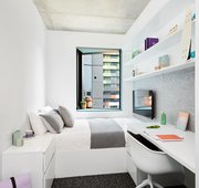 Enjoy a private room with a double bed and study area. You’ll share a large kitchen, dining space, lounge area and several bathrooms with your room mates. Basic information : Shared bathroom approx. 7.77m² Double bed (approx. 138cm*188cm) Shared kitchen 1 bed in your room Facilities in this room : Air Conditioning, Bathroom, Chairs, Closet, Desk, Door Lock, Heating, Kitchen, Television, WiFi. $429 - $454 per week rent