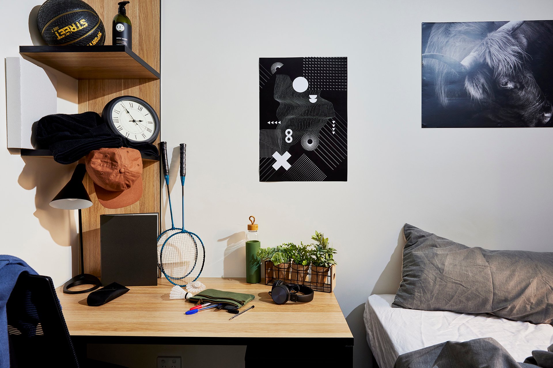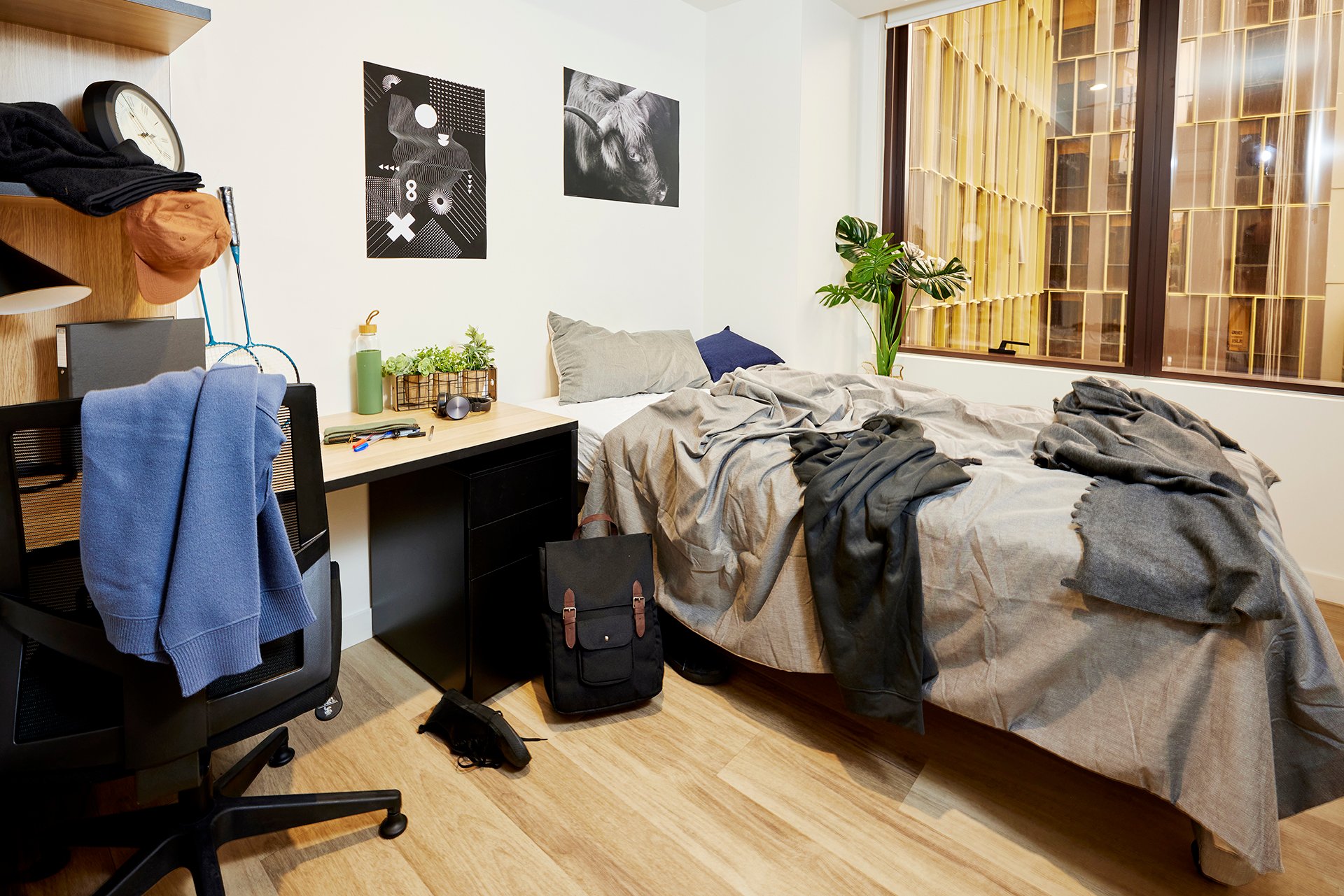 You can choose from studio or shared apartments with an ultra-comfy double bed, large study desk, super-fast Wi-Fi, private or shared bathrooms, a kitchenette, and plenty of storage space.
