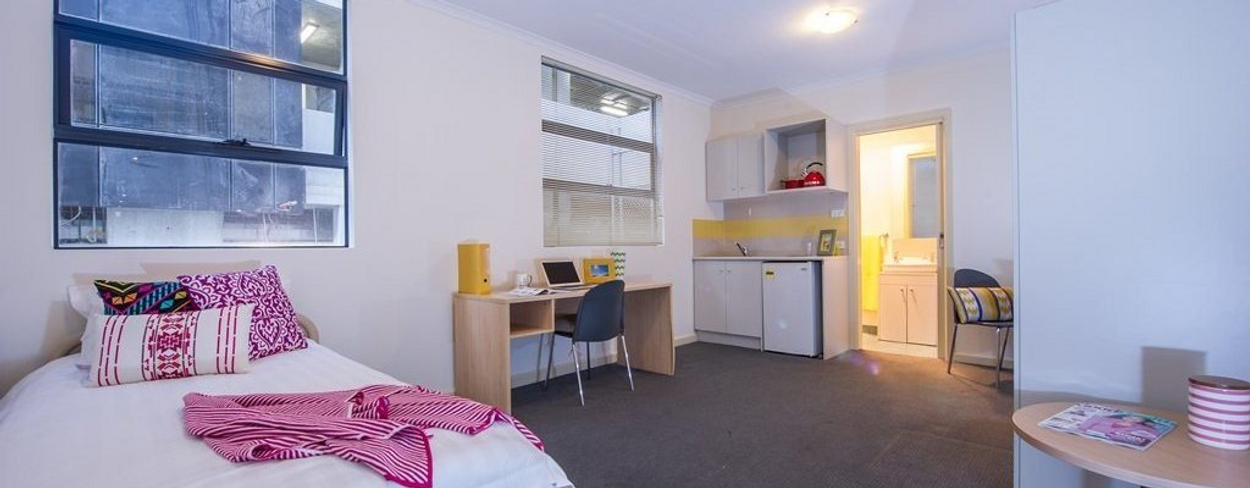 The UniLodge on A'Beckett offers completely equipped rooms with contemporary amenities such as a kitchen, study space, and bed. There are several room types available for different needs and demands, like single rooms, studio apartments, tiny one-bedroom apartments, and two-bedroom apartments; every room is unique in its own way.