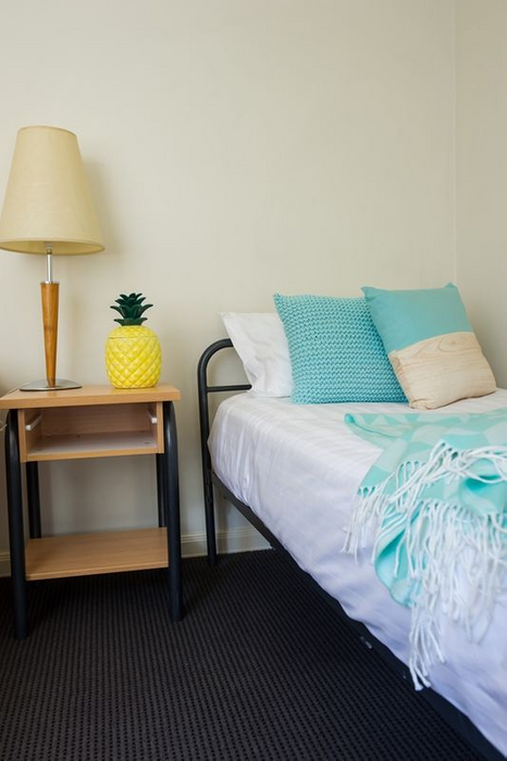 Spacious one bedroom apartment with an abundance of natural light suitable for single or double occupancy only. Apartment features a combined kitchen, living and dining zone with all of the essentials. Each one bedroom apartment comes with a private bathroom. Laundry facilities are located inside the building for your convenience. Apartment Features: 2x Single Bed Bedside table Study desk with chair Large built in wardrobe with ample storage 32 Inch Television Coffee Table Two Seater Sofa Bar fridge with freezer compartment 2 Gas Stove Burner Microwave Circular dining table complete with 2 chairs Electric wall heater Bathroom with toilet, shower over bath, vanity and full sized mirror Rent Includes: Fully furnished apartment Gas and water usage Unlimited internet (up to 5 devices) Community Spirit Program Tenant Contents Insurance* Vacuum Hire Access to resident lounge in basement Apartment Size: 35 SQM Bed Size: Single