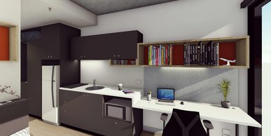 Our studios are perfect for students who prefer living in their own space. Come home to your own private sanctuary, unrivalled proximity to public transport and premium room features, including: King single bed with bedhead storage; Study desk with overhead storage; Heater, fan & blockout blinds; Closed and open wardrobe; Kitchenette with fridge, microwave, sink and electric cooktop; Ensuite bathroom with shower, toilet, mirror and basin. Room size: 15m2