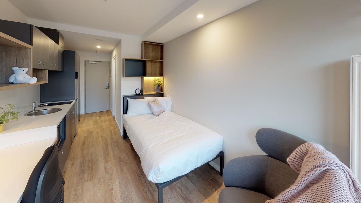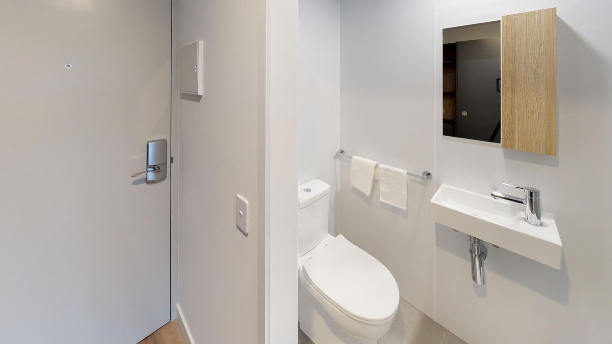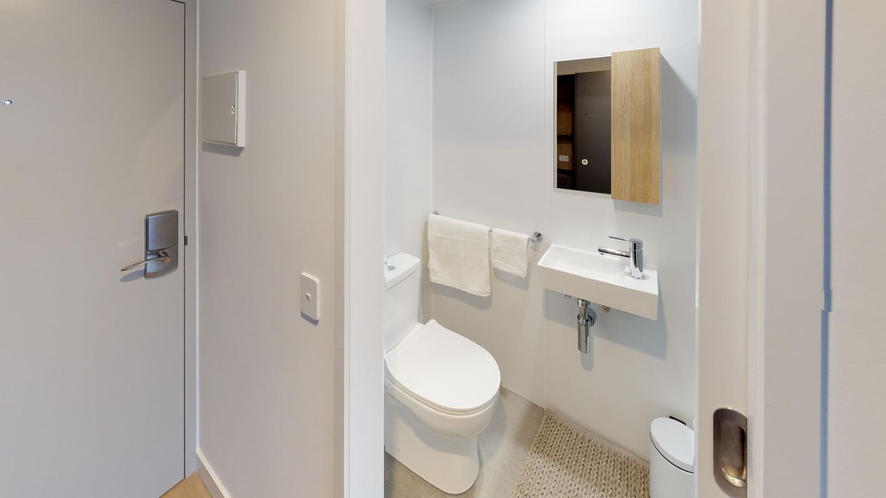 Our studios are perfect for students who prefer living in their own space. Come home to your own private sanctuary, unrivalled proximity to public transport and premium room features, including: Double bed with bedhead storage; Study desk with overhead storage; Heater, fan & blockout blinds; Closed and open wardrobe; Kitchenette with fridge, microwave, sink and electric cooktop; Ensuite bathroom with shower, toilet, mirror and basin. Room size: 26.2m2 approx