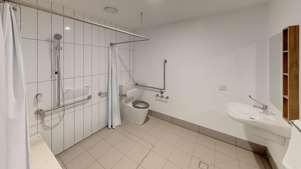 Our studios are perfect for students who prefer living in their own space. Come home to your own private sanctuary, unrivalled proximity to public transport and premium room features, including: Accessible features to DDA standards King single bed with bedhead storage; Study desk with overhead storage; Heater, fan & blockout blinds; Closed and open wardrobe; Kitchenette with fridge, microwave, sink and electric cooktop; Ensuite bathroom with shower, toilet, mirror and basin. Room size: 26.2m2