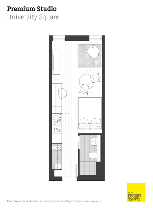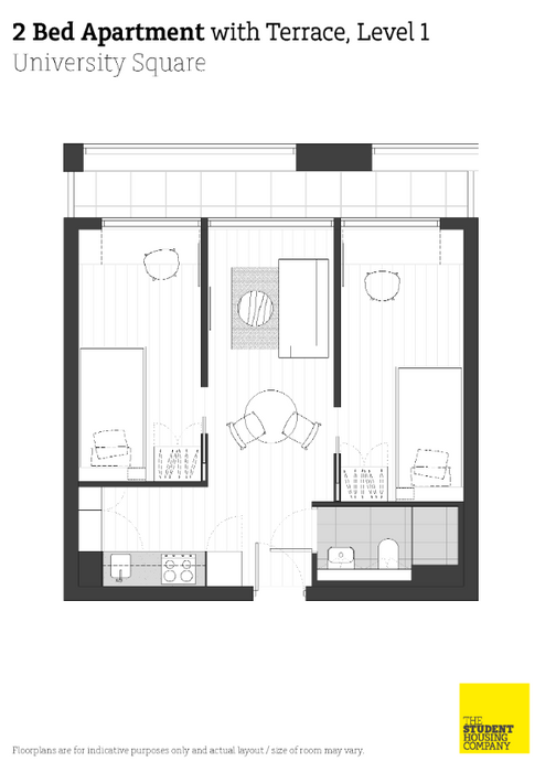 Live with friends or make new ones, and share a great kitchen-diner in one of these 3 bedroom apartments. These apartments are built for socializing with living space to cook, chat, study or chill with your mates. Apartment living, privacy of your own space and access to the abundance of great common spaces and shared facilities that University Square has to offer. The average size of our 3 Bed Apartments is approximately 49 sq.m. *Available on floors 10-12*