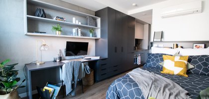 Like to keep the place just the way you like it? Why not live in a comfortable studio all of your very own, totally self-contained with your own bathroom, double bed, fully equipped kitchen with integrated appliances, and bags of storage. The average size of our studios is approximately 18 sq.m. * Available on floors 2-10 *
