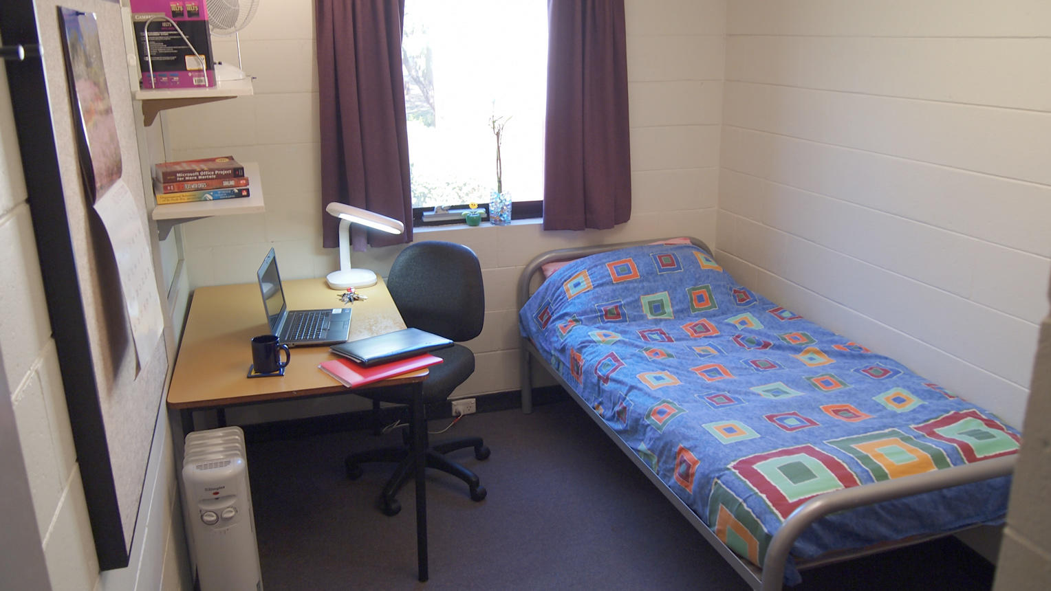Experience the enjoyment of living in a community with shared living areas including a kitchen, a lounge with a television set, and shared bathrooms. Access your own private bedroom with individual electronic swipe card access. These single rooms are approximate room size of 10m2 which consists of a single sized bed, lamp, heater, fan, wardrobe as well as a study desk and chair. Electricty, gas and water are included in your weekly rent. The following fees are applicable upon a successful booking application. Application/Processing Fee of $118 per application Facility Fee of $65 per person, per semester Activity Fee of $107 per person, per semester Departure clean of $107 per room A four week security deposit will also be required to secure your room.