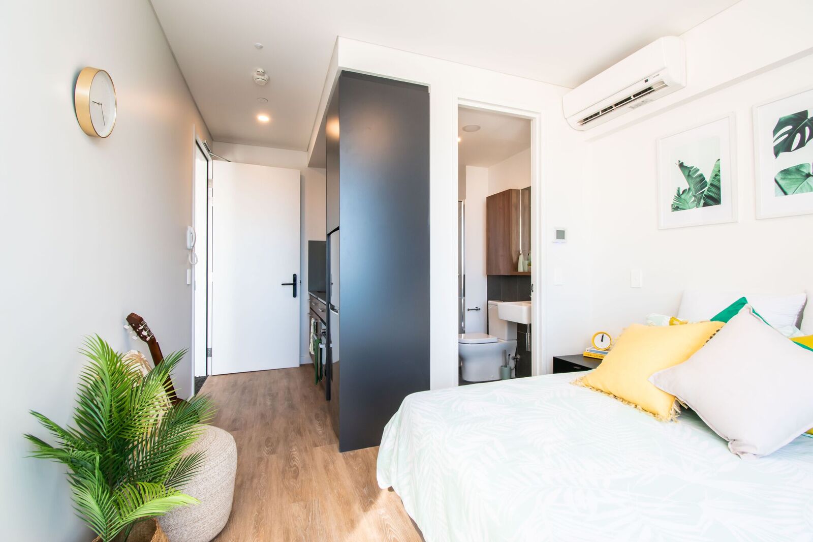 If you love the sound of our studios with all the high spec features but are looking to save a little on the cost, how about sharing a studio room with a friend or maybe make a new friend? Our twin studios are well designed to maximize privacy with a separate ensuite bathroom. When the full height sliding walls are opened up the room is converted into a large fully furnished living area with kitchen, great for chilling during the day. Our Twin Studio High Floor's are located on floors 16- 23 and the average size is approximately 27sq.m. * Available on floors 16-23*