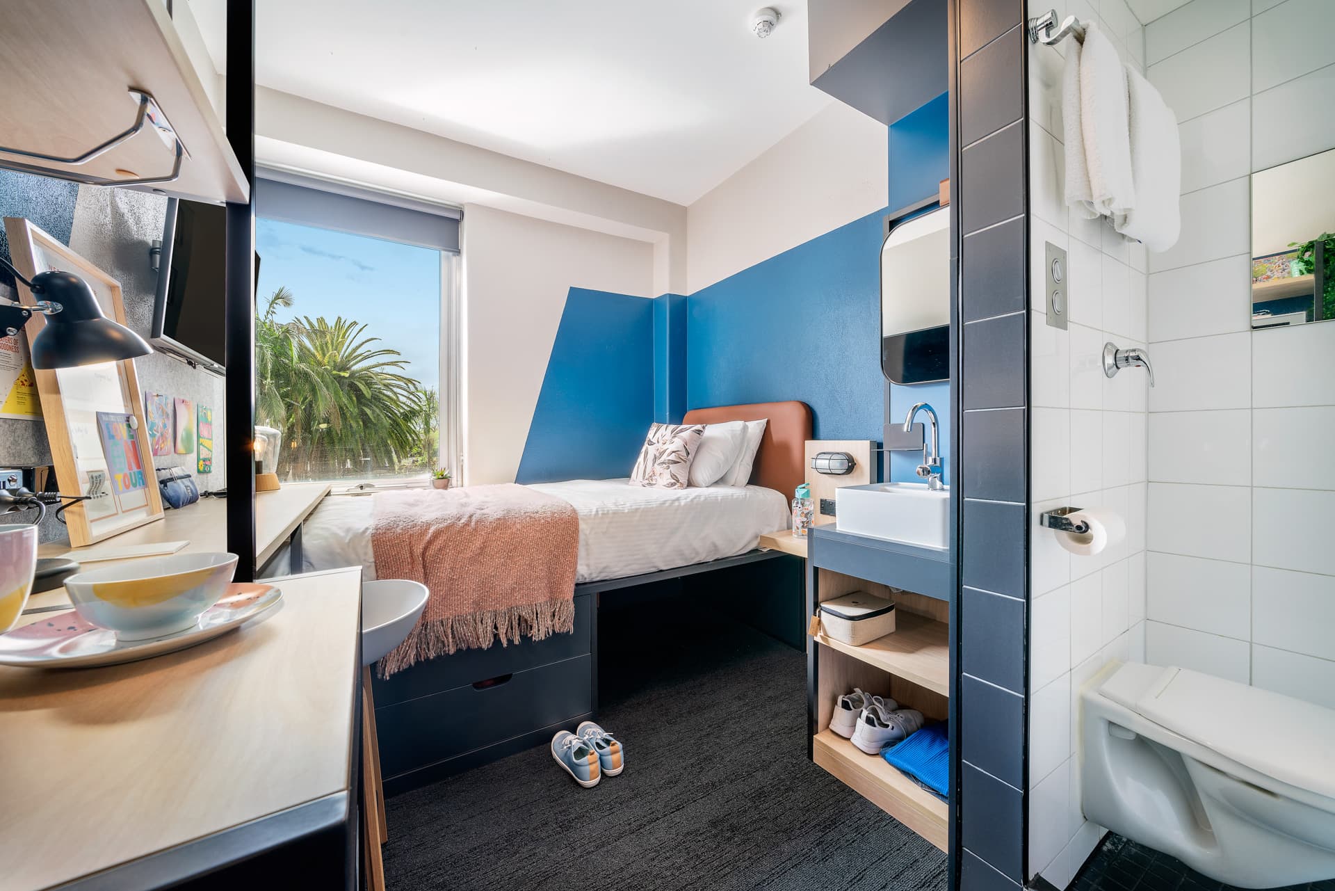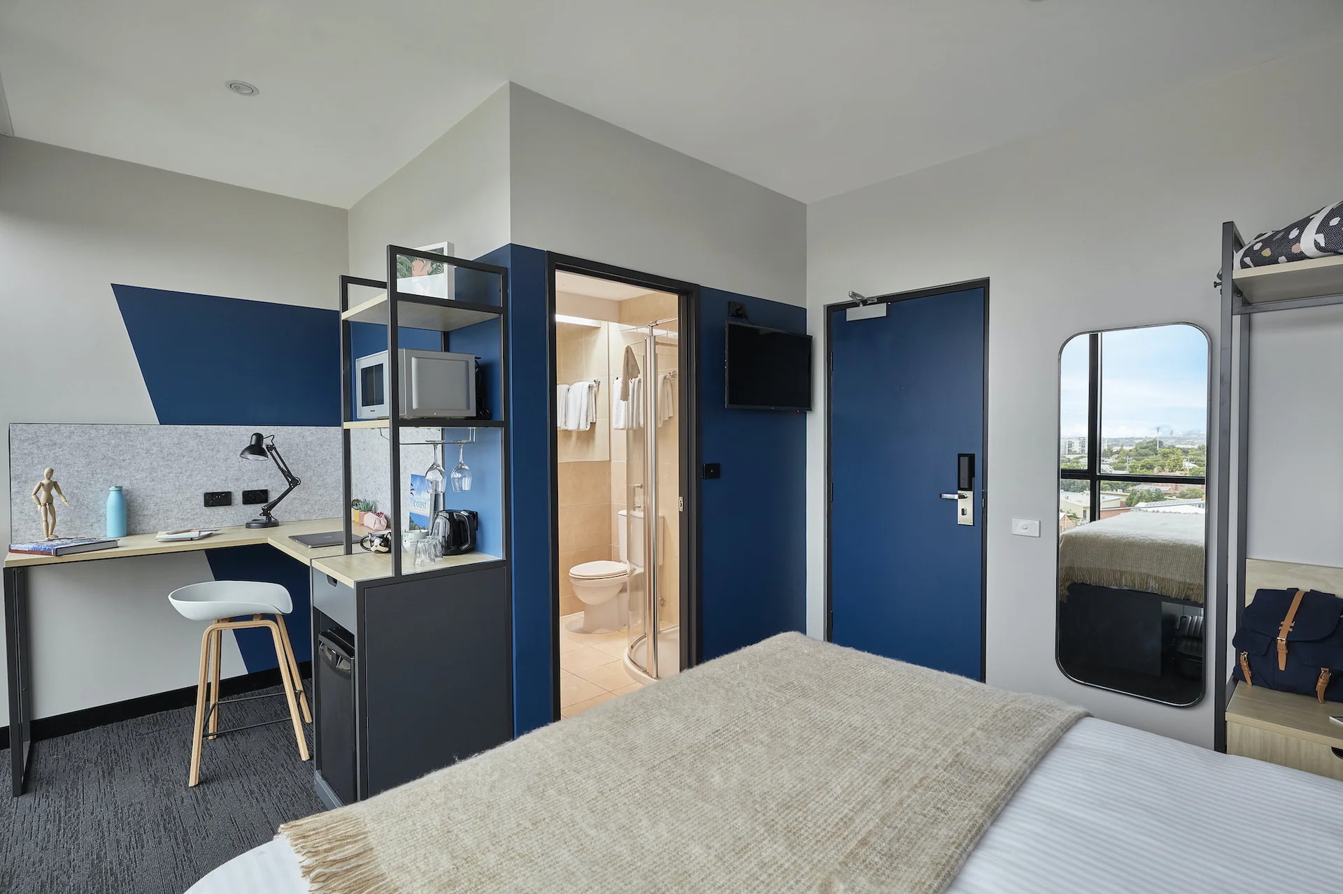 Campus Melbourne Accommodation offers students convenient yet luxurious accommodation in Preston with a fully furnished range of studios from which students can choose from. The rooms are equipped with a bed for some quality sleep, a smart TV so that students can catch up with their favourite series, hidden storage to maximise space to keep belongings safe and a private ensuite bathroom.