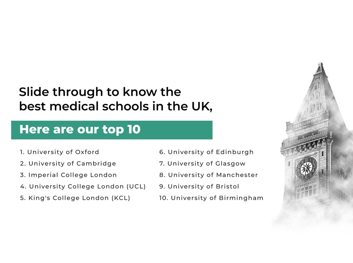 Slide through to know the best medical schools in the UK, here are our top 10: