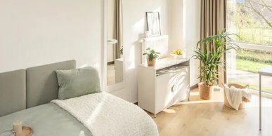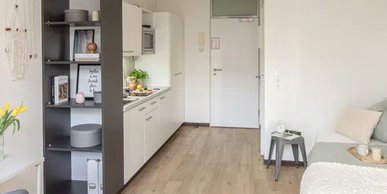Find your personal space in the biggest shared accommodation in town: Live the way you like in your private studio with your own kitchen and ensuite bathroom. (Sample illustration!)