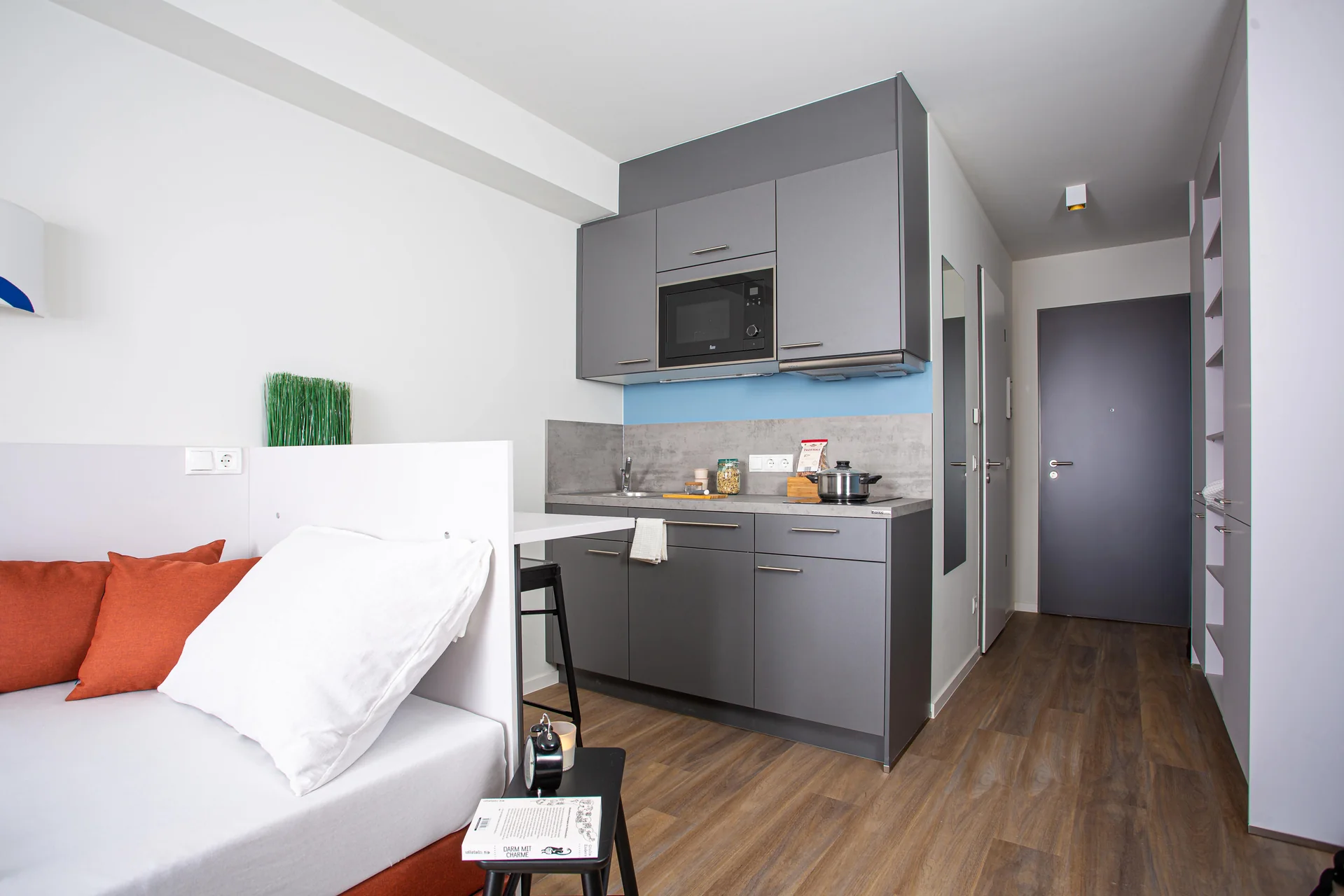 Find your personal space in the biggest shared accommodation in town: Live the way you like in your private apartment with private kitchen and ensuite bathroom. (Sample illustration!)