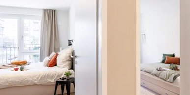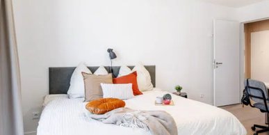 The shared apartment is perfect for people who would like to live with 2-3 people together. Enjoy your own four walls including sleeping and work area and share the kitchen and shower room with your roommates. (Sample illustration!)