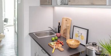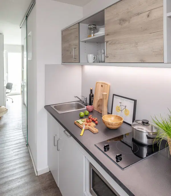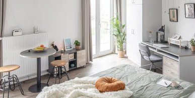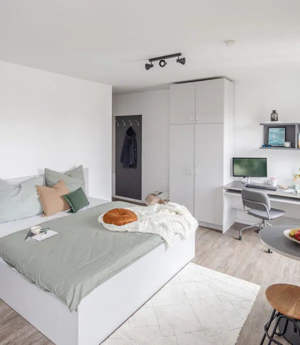 Find your personal space in the biggest shared accommodation in town: Live the way you like in your private studio with your own kitchen and ensuite bathroom. (Sample illustration!)