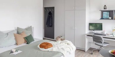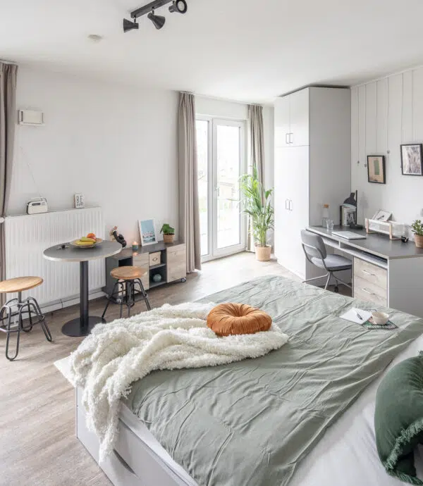 Find your ideal student accommodation at THE FIZZ Hanover right in the university district of the city’s Nordstadt! Whether alone or with friends – choose your personal favourite from 303 fully furnished apartments and feel right at home. With our all-in living concept there is something for everyone. Relax in the green courtyard, work out in the inhouse gym and create unforgettable moments with your fellow neighbours in our diverse, completely modernized community areas.Address: Am Kläperberg 11, 30167 HanoverBook an on site viewing and visit our lovely house. Our House Manager will be happy to show you your future home. Explore all available apartments and community areas with your own eyes. During the tour, please feel free to ask all your open questions.All about that service – House Manager Daniel and Assistant House Manager Alexander will be happy to support you throughout your stay at THE FIZZ. So, reach out to them if needed or you can just drop by the reception and say Hi. We look forward to going on this journey with you.