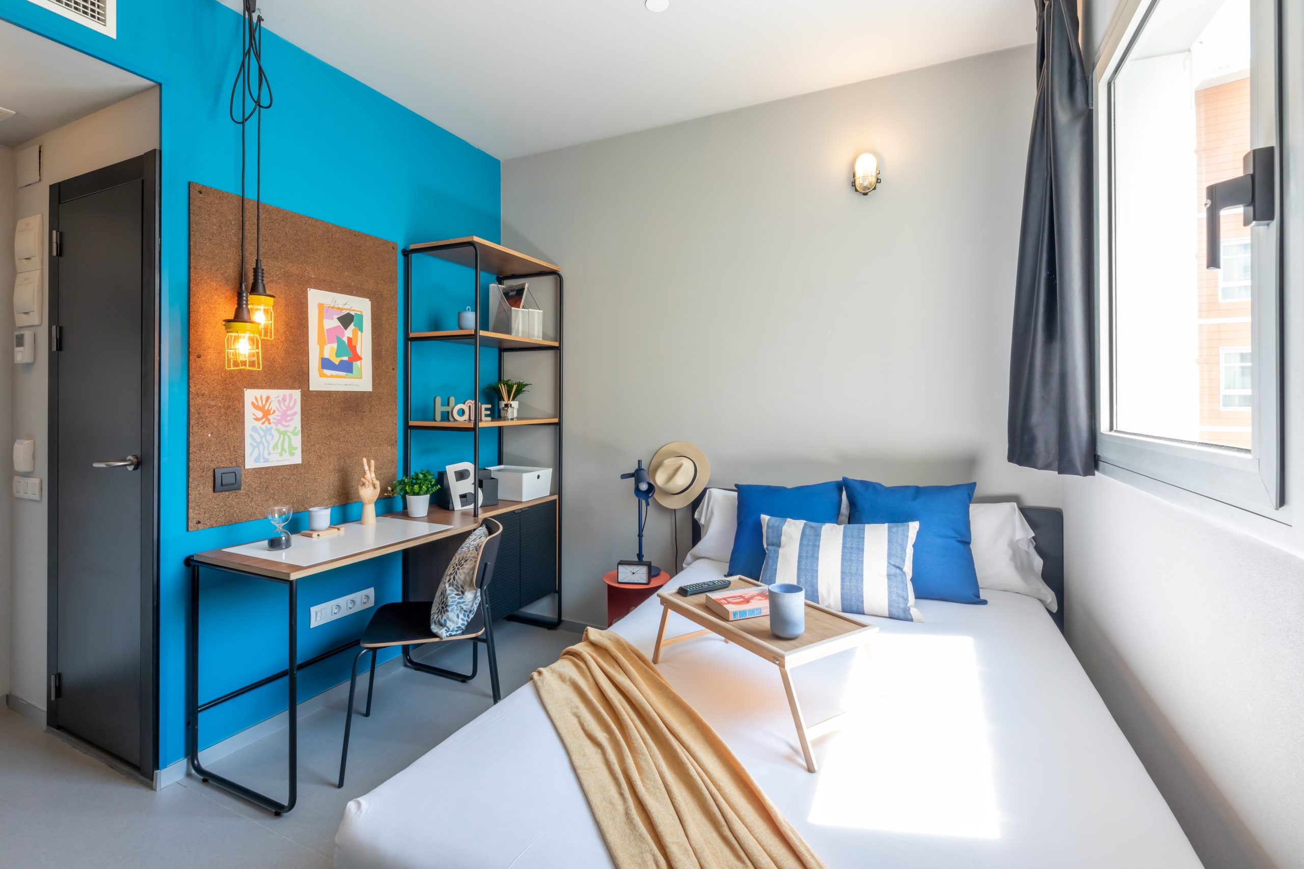 Marina is a student housing in Barcelona providing students with accommodation close to their respective universities. The property mainly offers its residents studio accommodation. Studios are self-contained units fitted with air conditioning, Wi-Fi, a smart TV, and include a double bed with under-bed storage, a workspace, a wardrobe, and a private en-suite bathroom. Theres a private lounge and a kitchenette in each studio as well.