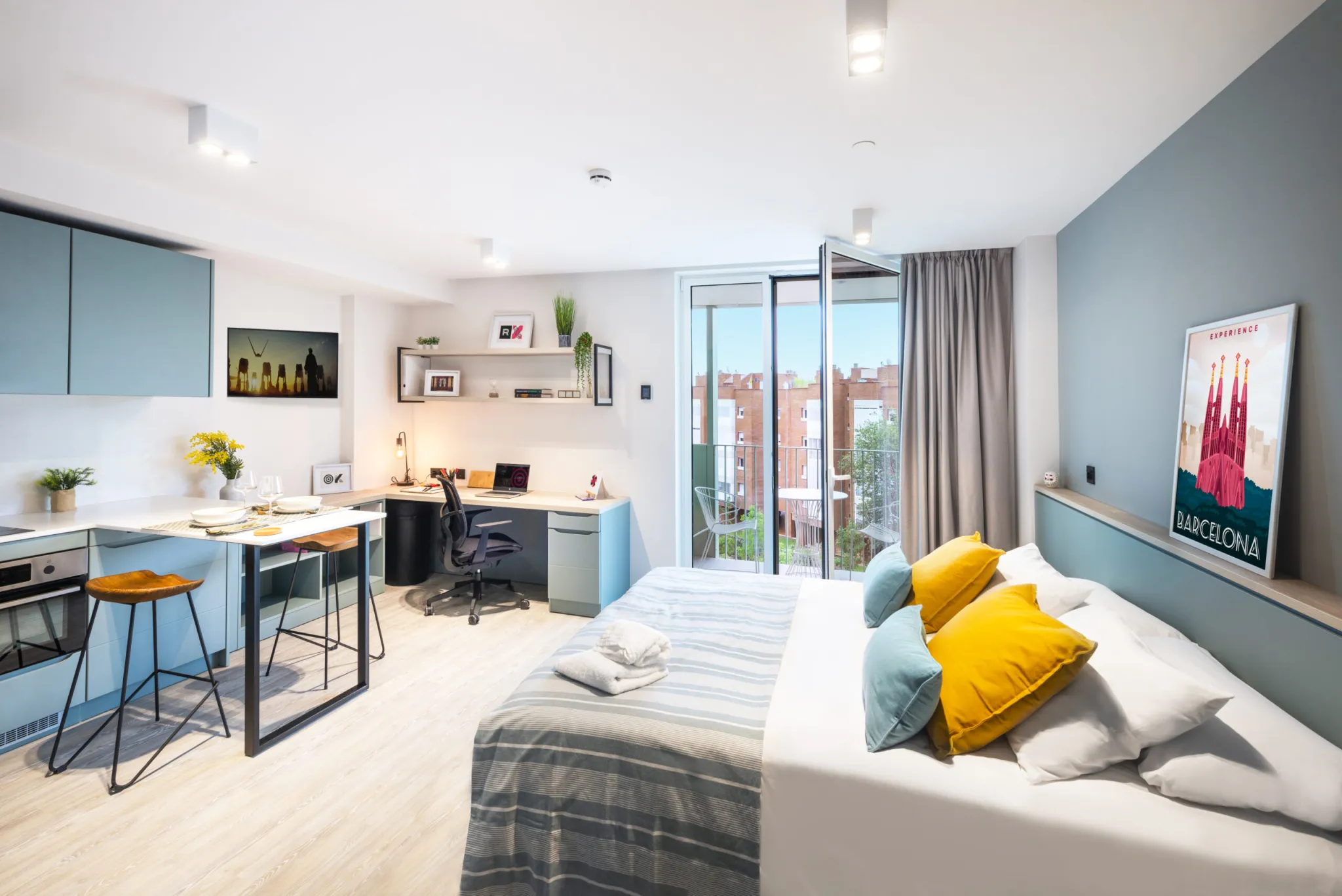 Students at Vita Pedralbes have a choice of well-thought-out studio options, all of which come furnished with spacious study spaces, fast Wi-Fi, Smart TVs, lots of storage, and comfortable beds. To further ensure a stress-free stay, student accommodation in Barcelona provides daily free breakfast, all-inclusive bills, and free bi-monthly room cleaning.
