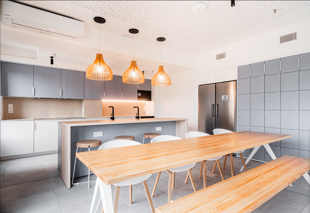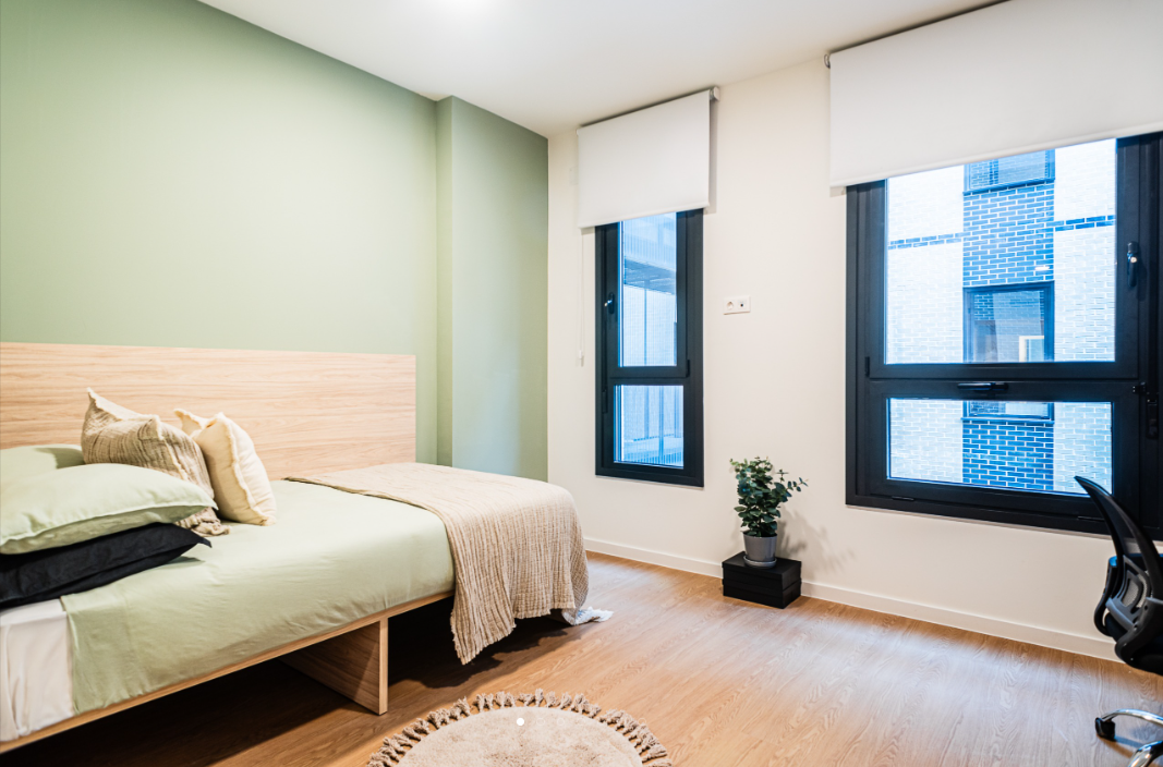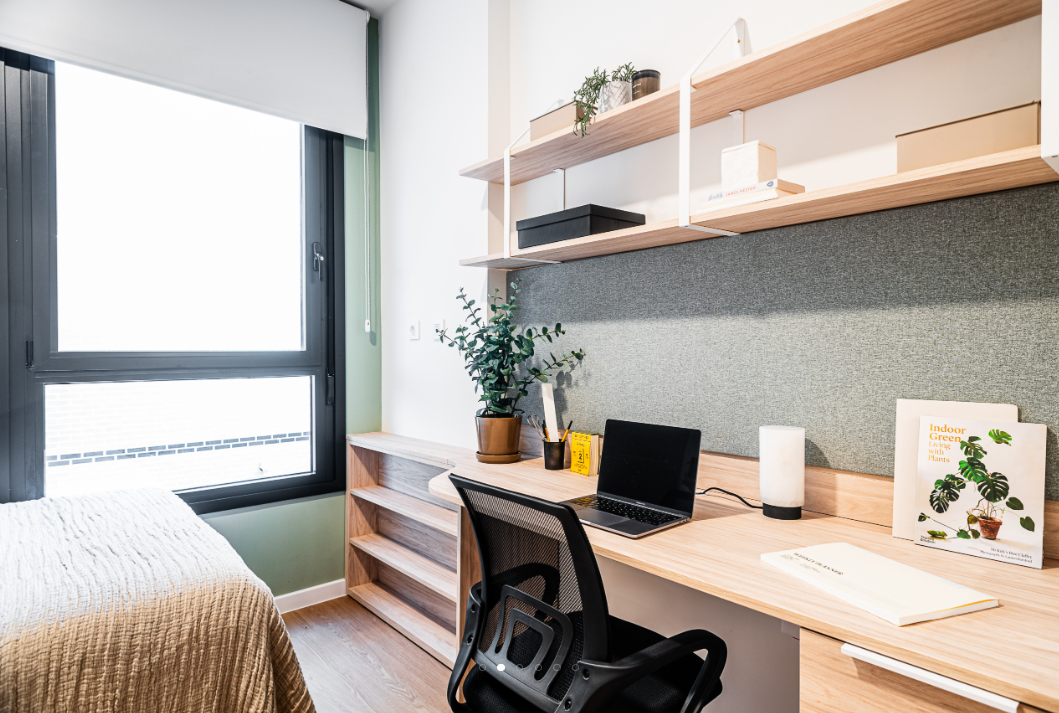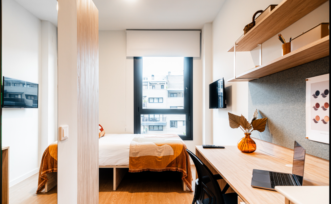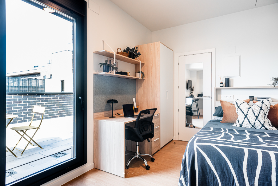 The amenities and features offered by this Madrid student accommodation are plentiful and include Wi-Fi, a 24/7 reception, and on-site laundry facilities. There’s a library where you can enjoy some peace and quiet while working or studying, as well as a games room where you can engage in friendly competitions with friends or fellow residents. A living room is available where you can socialise and hang out with friends, along with a movie room, and a terrace where you can enjoy the weather and the outdoor views.