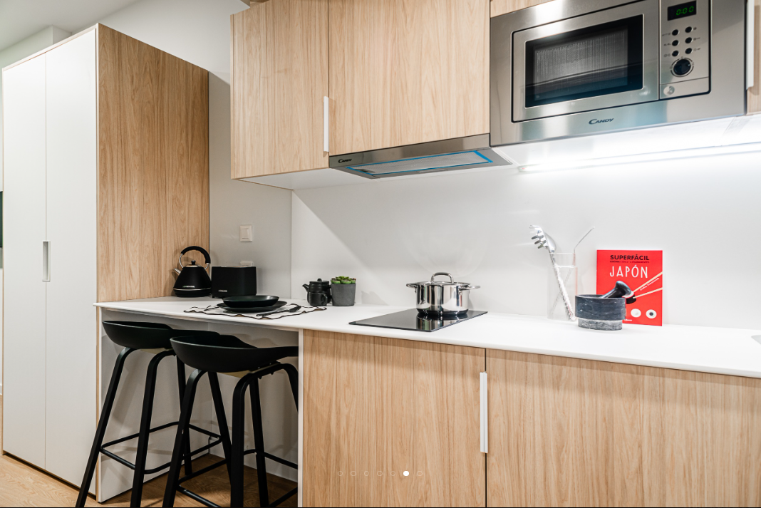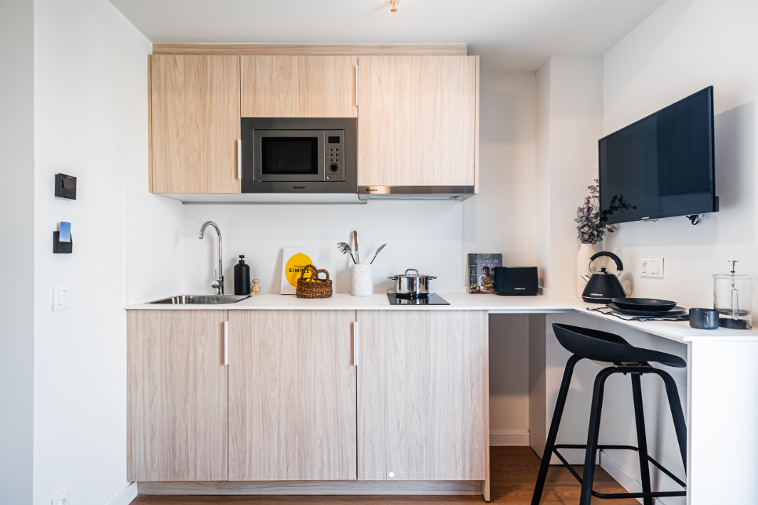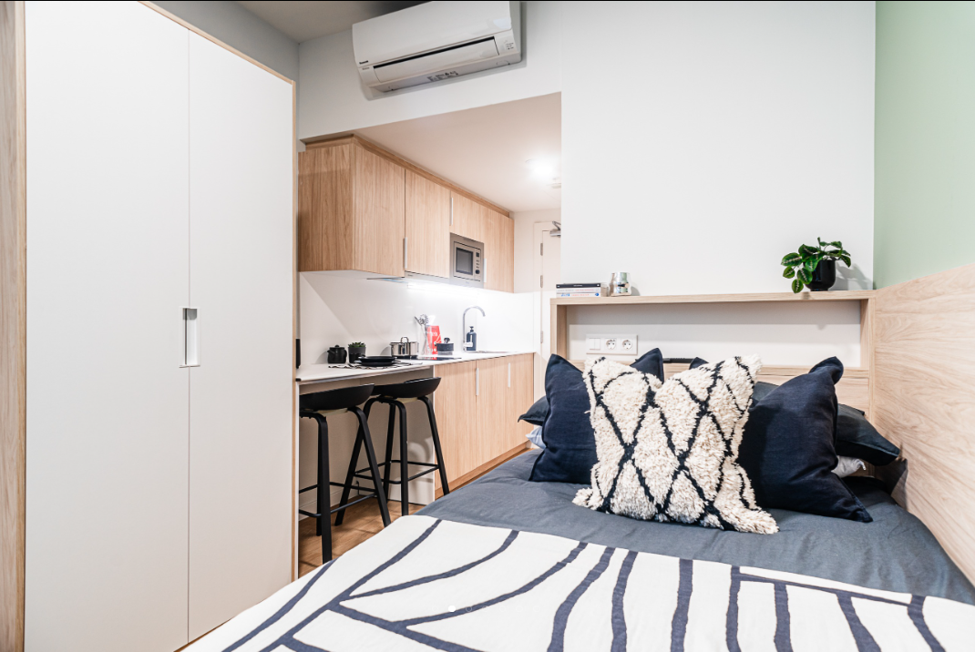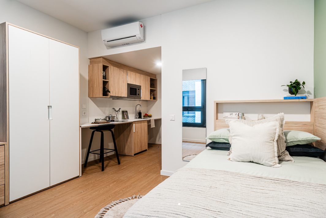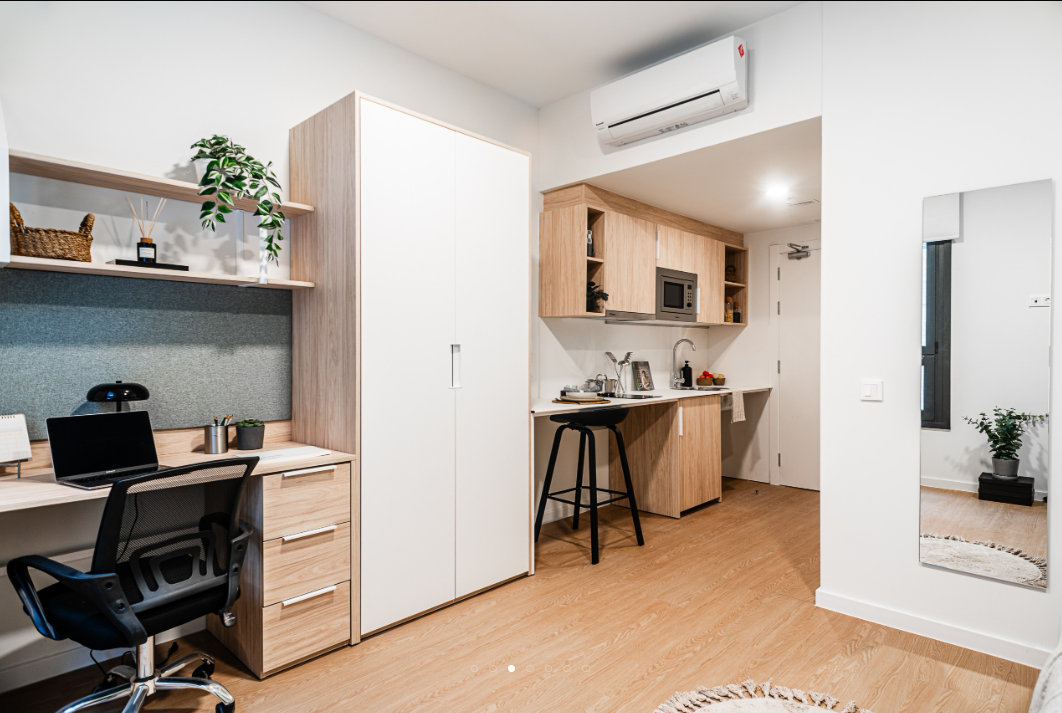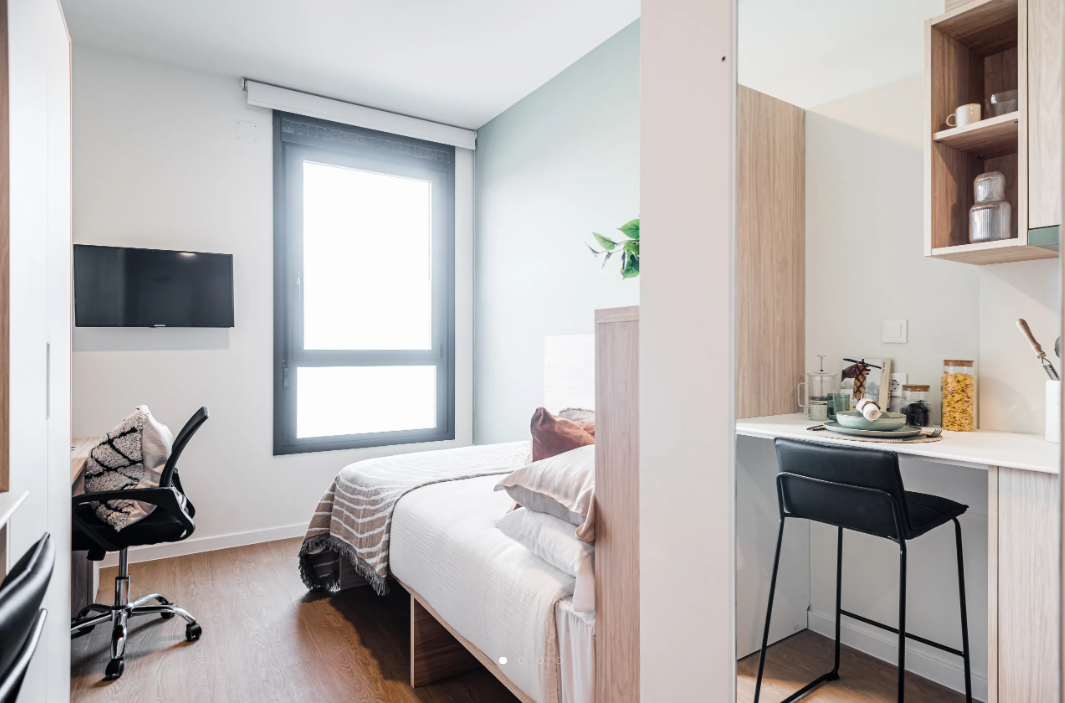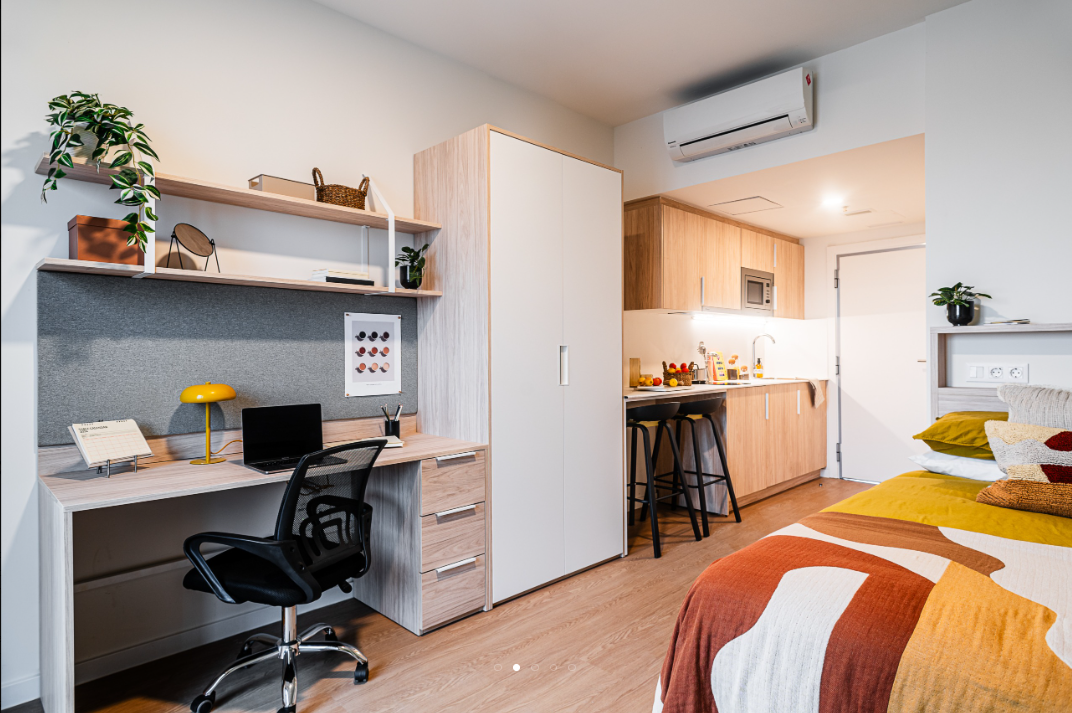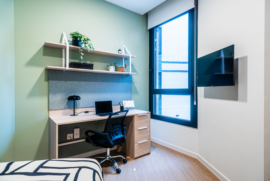 Aravaca is a student housing in Madrid offering accommodation to students attending nearby universities. The property mainly offers its residents studio accommodation. All studios are self-contained units fitted with air conditioning, Wi-Fi, a smart TV, and include a private en-suite bathroom, a double bed with under-bed storage, a workspace, a wardrobe, a full-size mirror, and shelves. A private lounge area and a private kitchenette are also available, the kitchenette is equipped with a microwave and an under-counter fridge with a freezer. Accessible studios are also available at the property.