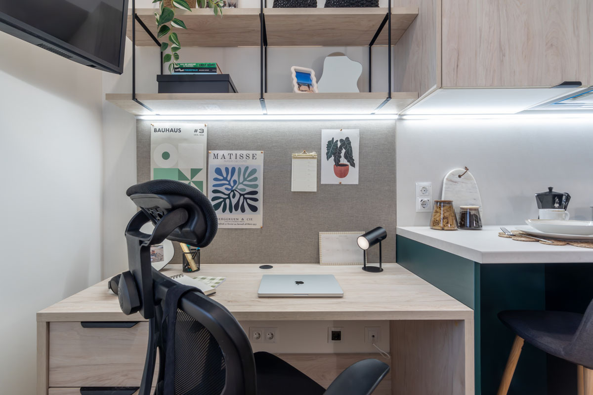 Enjoy the added benefit of outdoor space with our Classic Studio with Terrace, located on floors 0 and 4. These studios range from 13-14m2 inside, with terraces between 7-11m2 —perfect for taking in the fresh air. Inside, you’ll find a kitchenette with a 2-ring induction hob, cooker hood, sink, a fridge with freezer compartment, and a microwave combi-oven. These studios include a comfy double bed, smart TV, spacious wardrobe, a study desk with LED task lighting and office chair, and a private ensuite bathroom.