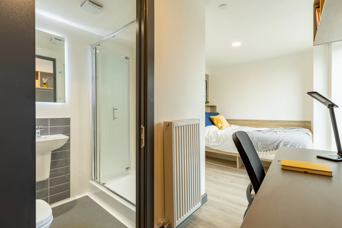 Everything you need for the best student life, your own double bed alongside your own en suite shower room, spacious desk space, ample storage and more