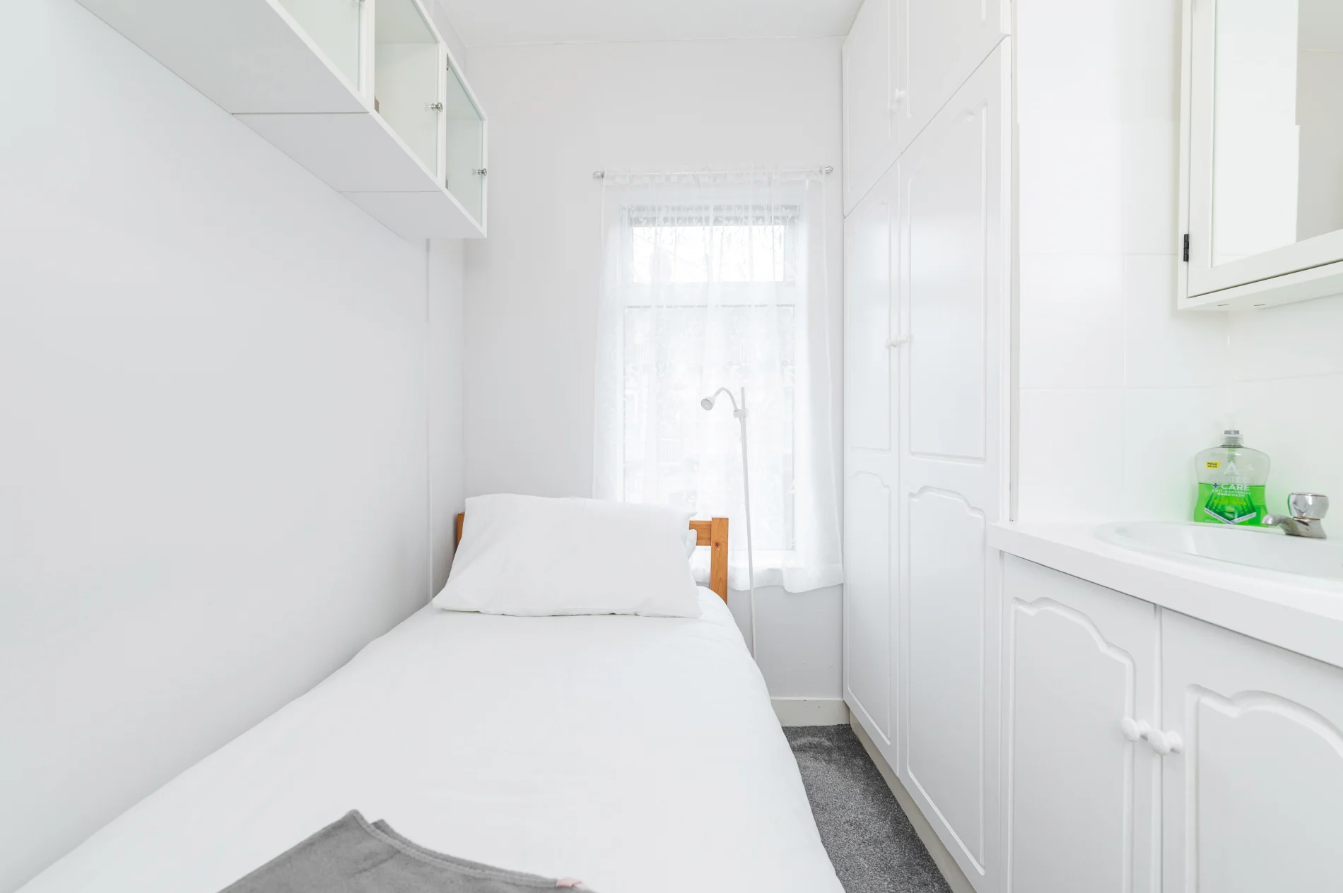 The Cosy Single Bedroom is a single room. The floor size of the room is 65 m². The room is on the first floor of the house. The room has a comfortable bed and ample storage space. The students have to share the kitchen and bathroom with the other tenants.